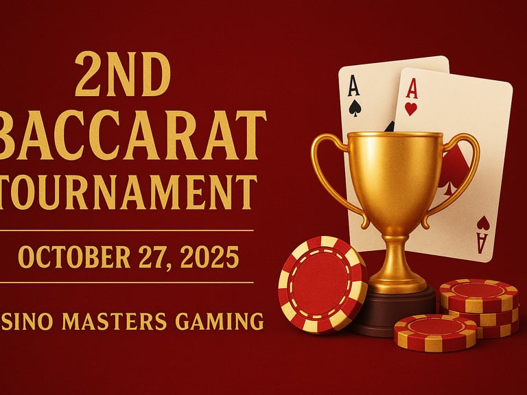 Registration for the 2nd Baccarat Tournament is now open at Casino Masters Gaming. Signing up is quick, easy, and secure — just create an account, verify your information, and reserve your slot before entries close.